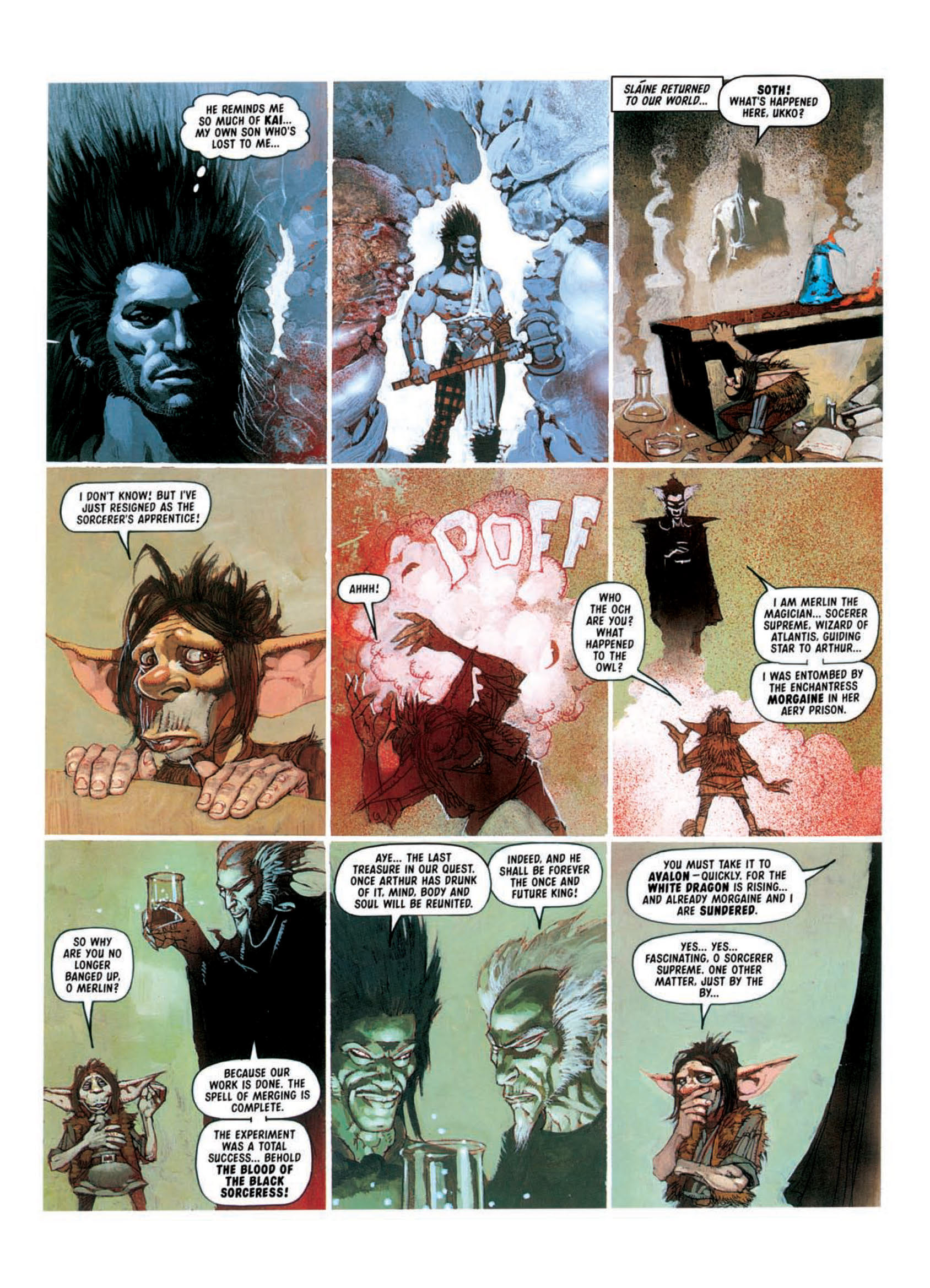 2000AD's Celtic Warrior Sláine transplanted to the time of King Arthur and Merlin- painted over 20 years ago with real paint on paper!